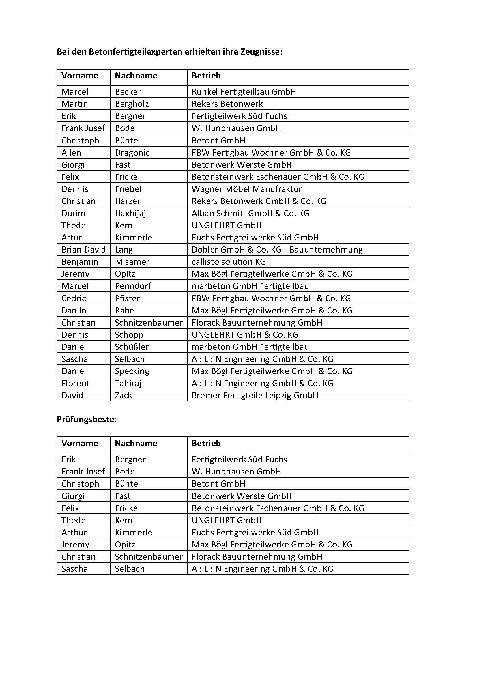 „Bereits zum Lehrgangsstart, als wir Sie hier im AWZ Bau begrüßt haben, habe ich Ihnen meinen Respekt und meine Anerkennung dafür ausgesprochen, dass Sie die Baustellenpraxis gegen den Vollzeitunterricht eintauschen. Nach vielen Unterrichtsstunden, genauer gesagt 90 bei den Betonfertigteilexperten, 120 bei den Vorarbeitern und 160 bei den Werkpolieren, dem Pauken nach Feierabend und den Prüfungen ist es endlich geschafft - herzlichen Glückwunsch!“, so Heiko Schmid, Geschäftsführer des AWZ Bau.