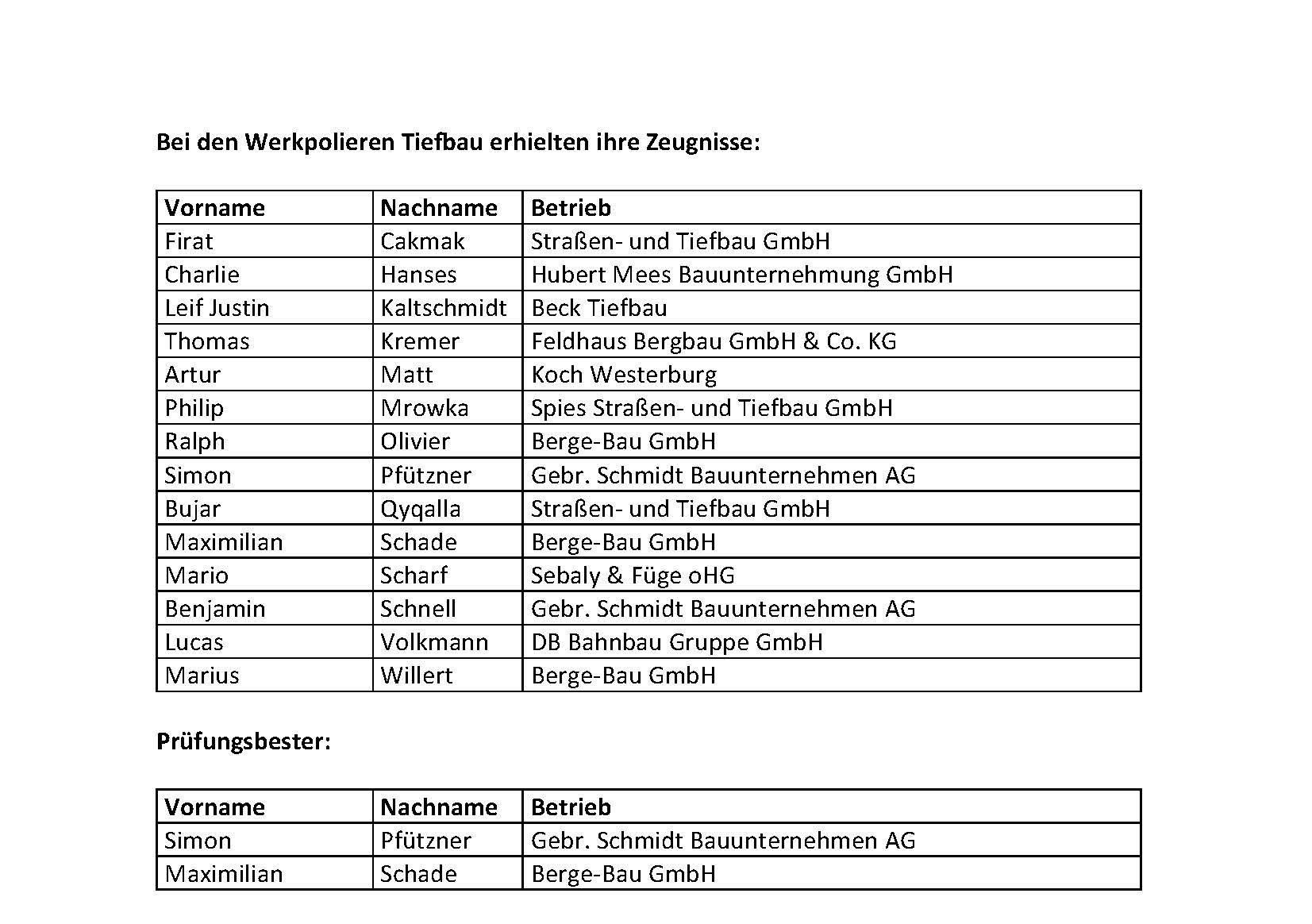 Prüfungsbeste geehrt